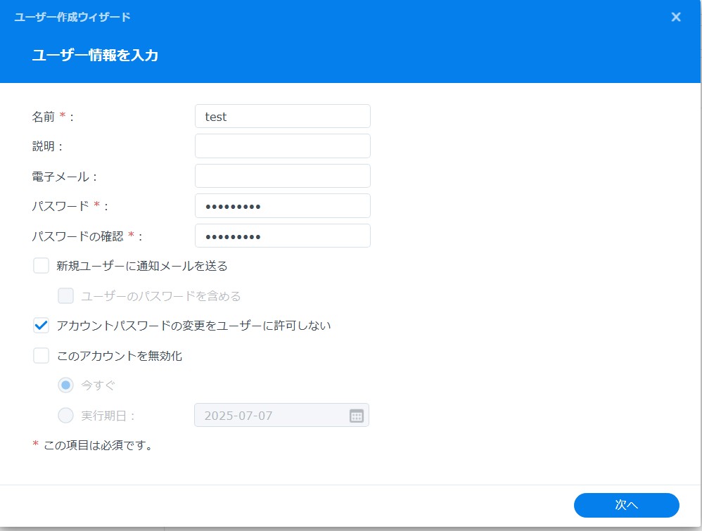 ローカルアカウントと違い、パスワードは8桁以上の制限があった。