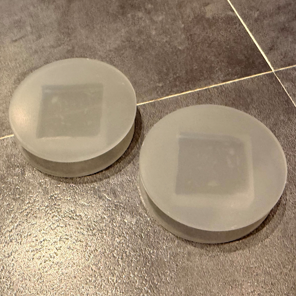 直径7.5cmのアクリル板に4cmのジェルパッドを挟み込みます。