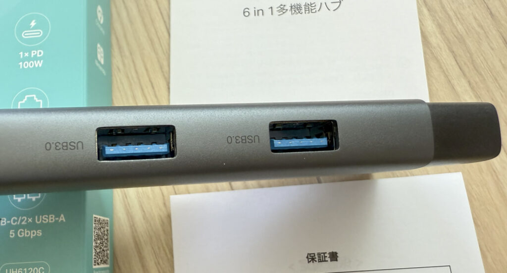 反対側に USB Type-A × 2ポート