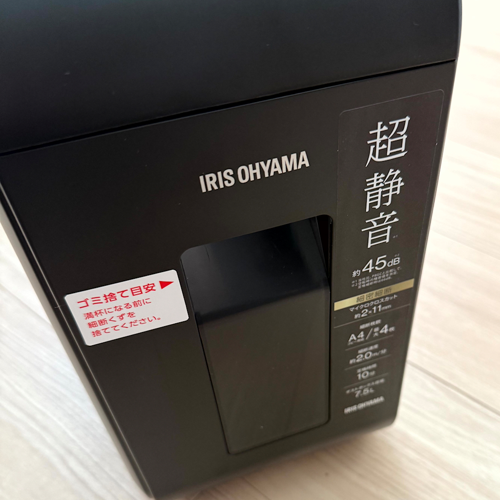 今使っているシュレッダーは別メーカーで5年くらい経ちます。その前がIRIS OHYAMAのシュレッダーで、指はさみ防止シャッターが付いている同形状のモデルでした。モーターがへたってきて3枚も厳しくなってきたので買い換えた記憶があります。