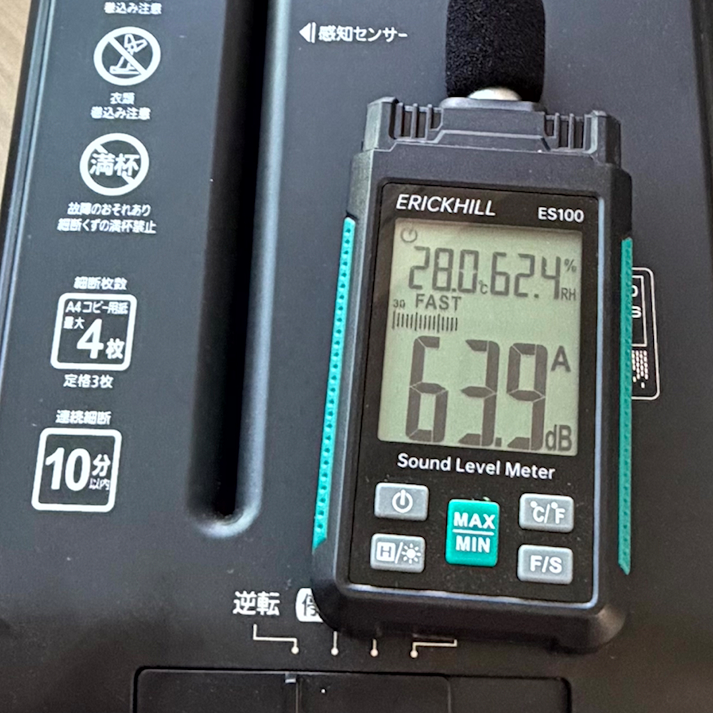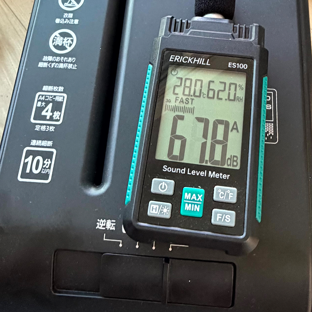 実際に、紙を裁断してみると紙が裁断されるパリパリという音の方が大きくて、以前のシュレッダーと比べると相当静かに感じました。