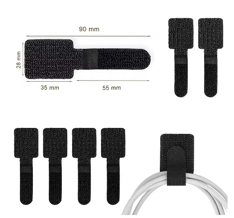 四角い部分に粘着部分があり、テーブルの裏や壁等のケーブル等を固定したい部分に貼り付けて利用します。
