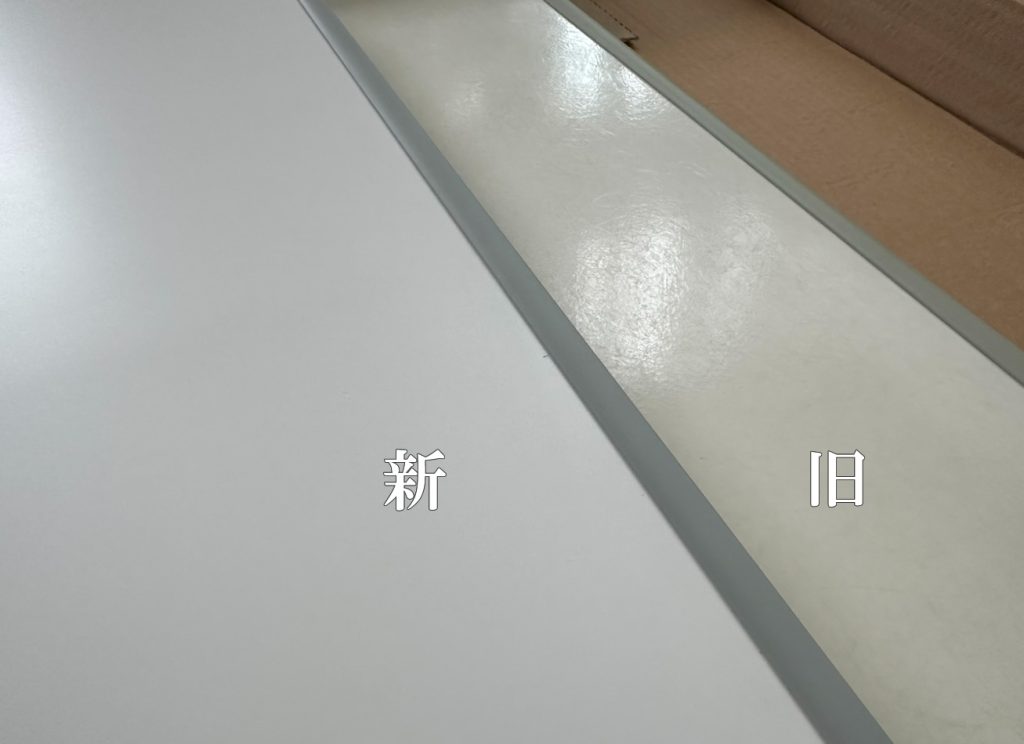 色が違うのは経年劣化かと思いますが、材質が変わっていて旧製品にあったFRPガラス繊維の様な見た目がマットな状態になりました。