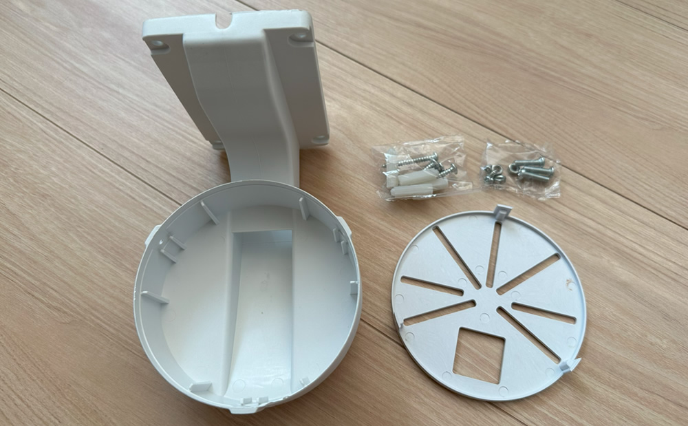 カメラの取付台とブラケットが後から接続できるという施工者に優しい作りです。すばらしい。