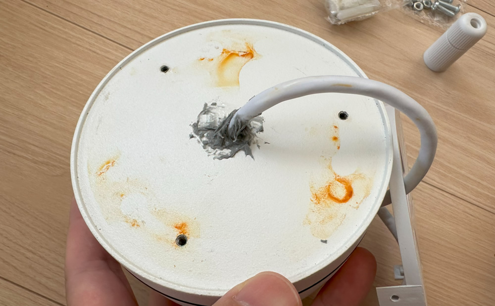 ブラケットの天井部分に真っ直ぐ収まる様にしないといけない様ですが、そうなるとカメラを取り付けるカバー部分にケーブルを納める事になるので、現場でカメラ台を取り付ける必要がありそうです。