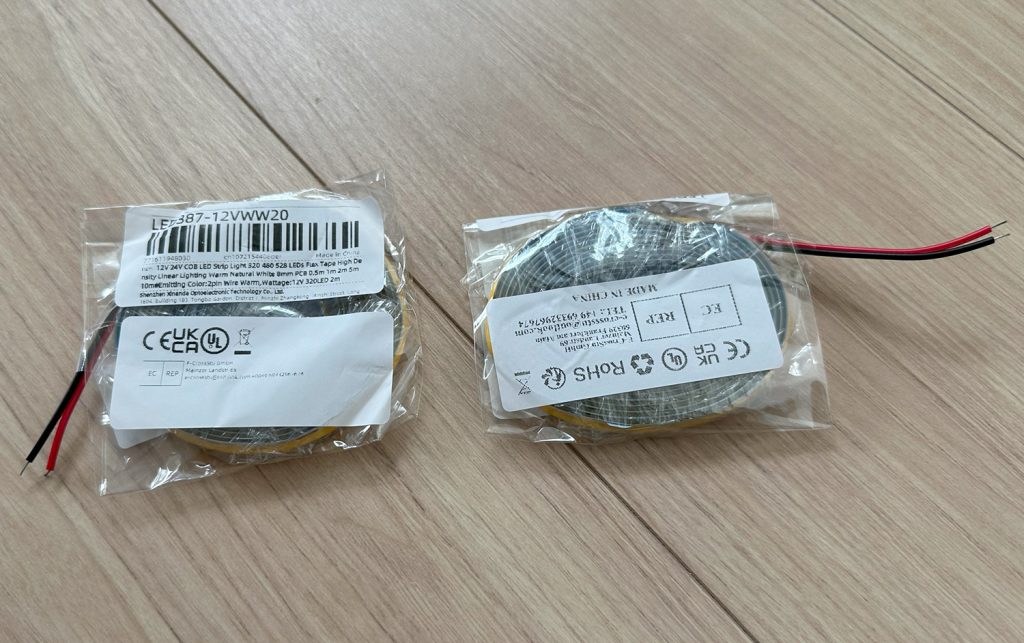 LEDを12mm幅のアルミレールに入れて、その上から光を和らげるためにカバーします。
