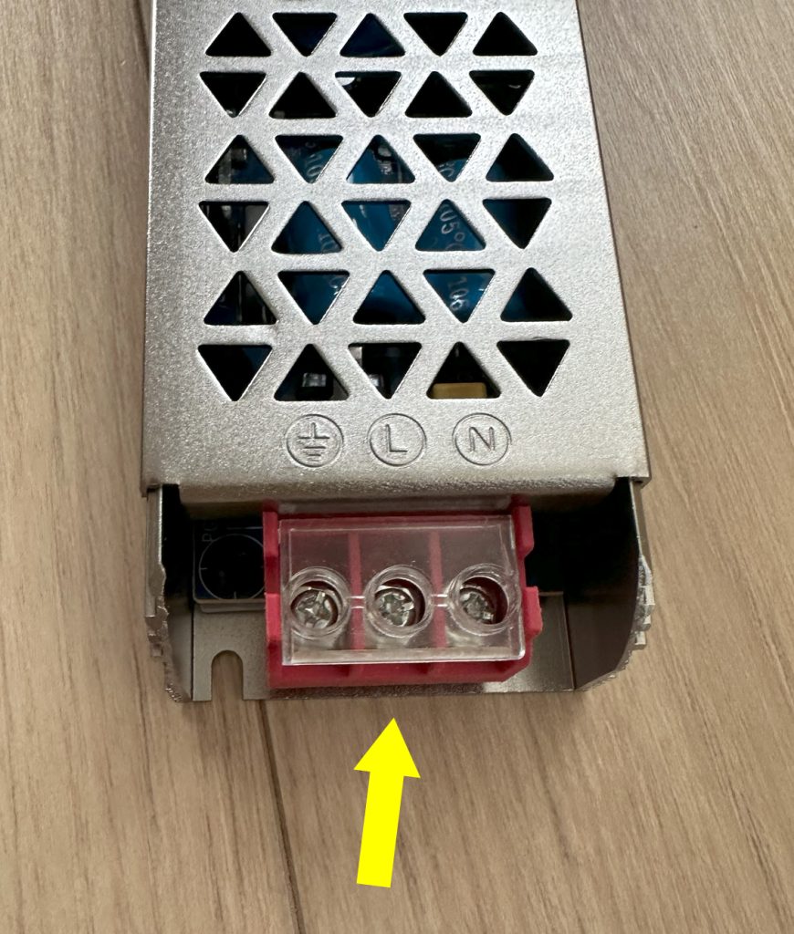 赤色部分にVVFケーブルを接続したのですが、VVFケーブルのよじれで、赤い端子部が基盤から外れそうになり接触不要となりました。