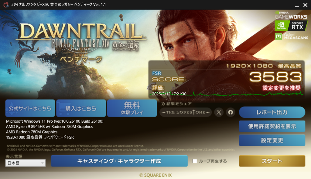 まだFFXVは使えますが、そろそろ別のベンチを考えないといけないかもしれません…。