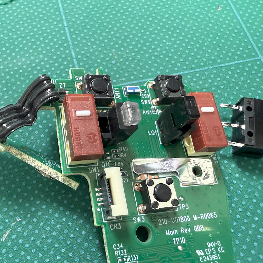 早速マウスをバラして基板から純正の喧しいスイッチを取り外します。