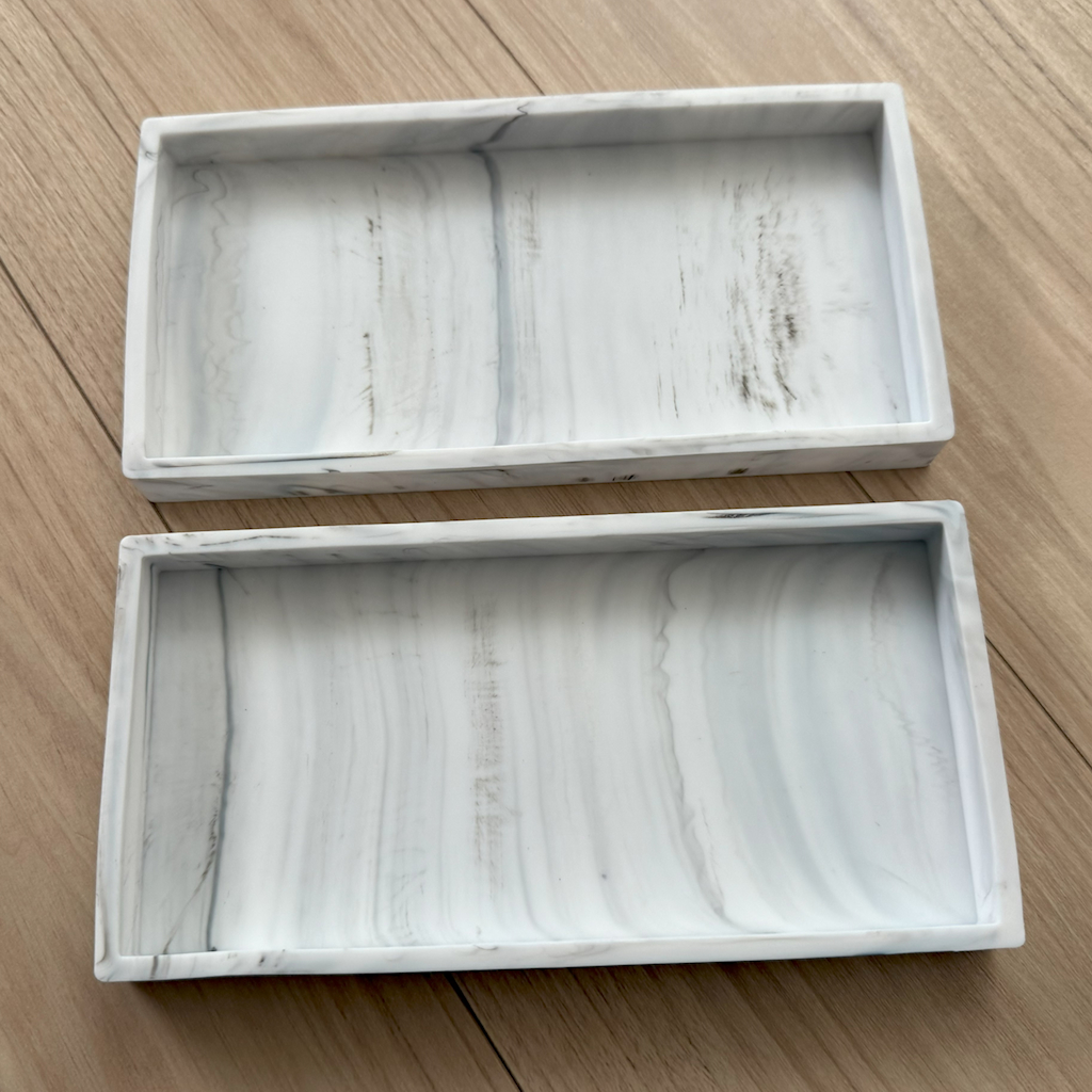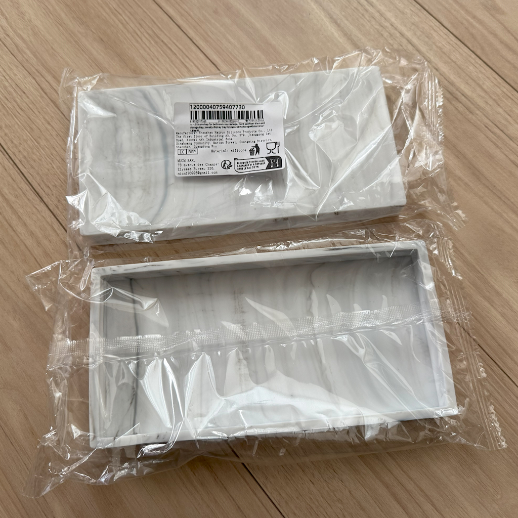 洗面所のカウンターに手洗い洗剤ポンプや洗顔フォーム等を乗せていると小傷がつくのでシリコントレイを購入しました。
