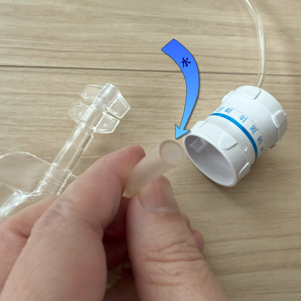 ちょっと面白いかと思って買ったのですが、水はパックの上から入れる事ができず、この細い管からしか入れられない様で、給水が面倒という事がわかりました。